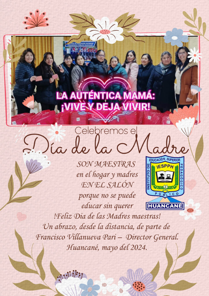En este día tan especial, el director, la plana docente, el personal administrativo y los estudiantes, extienden un cordial saludo y abrazo fraterno a todas las madres de la IESPP HUANCANE.